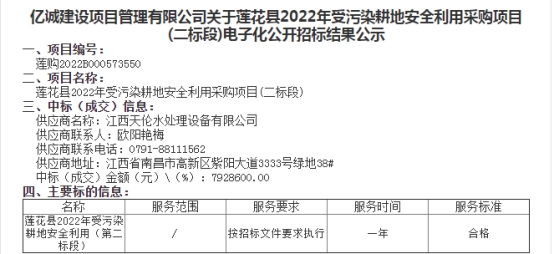 熱烈祝賀我公司2022年5月17日喜中《江西省蓮花縣2022年受污染耕地安全利用采購(二標(biāo)段)項目》。